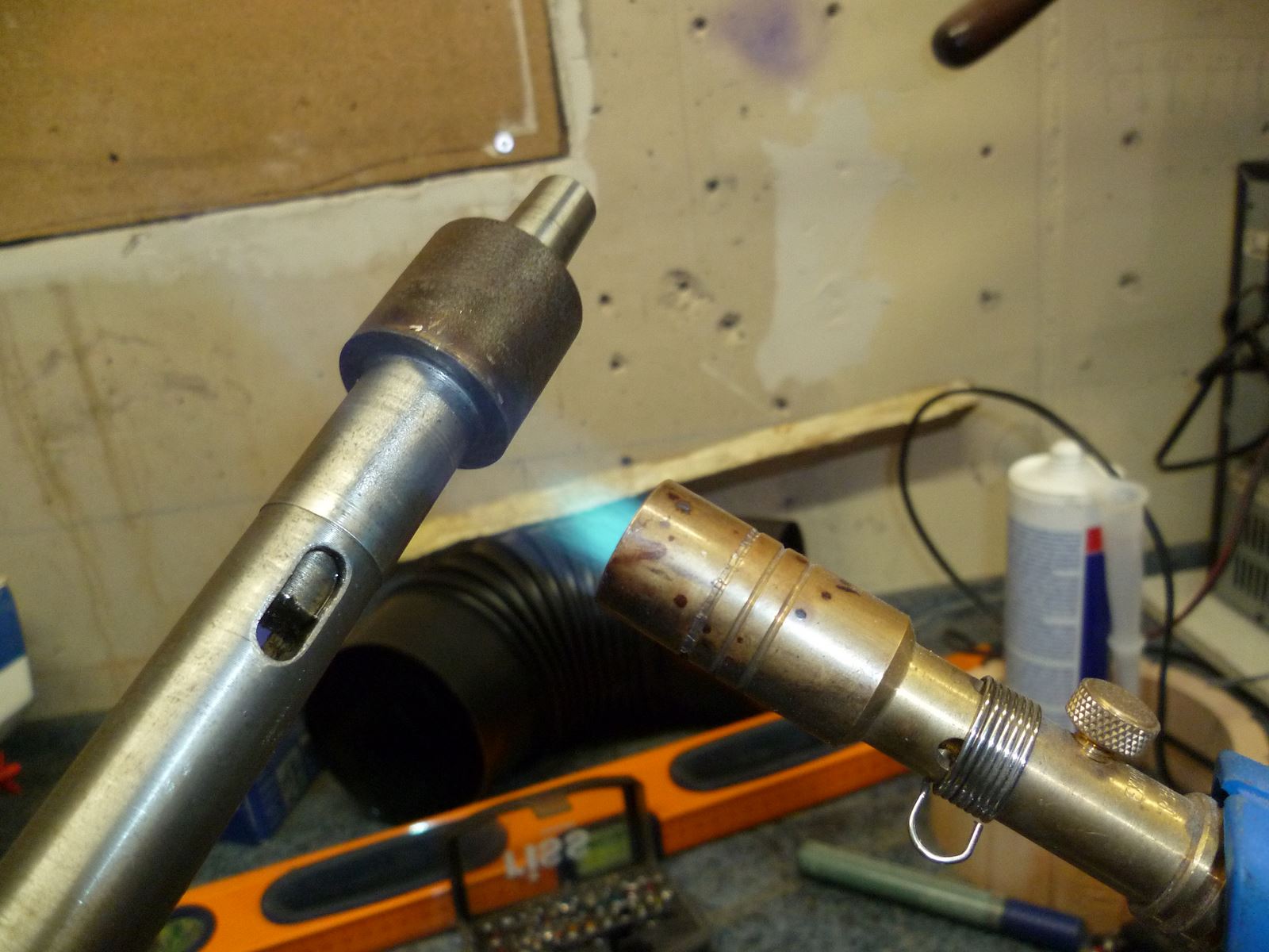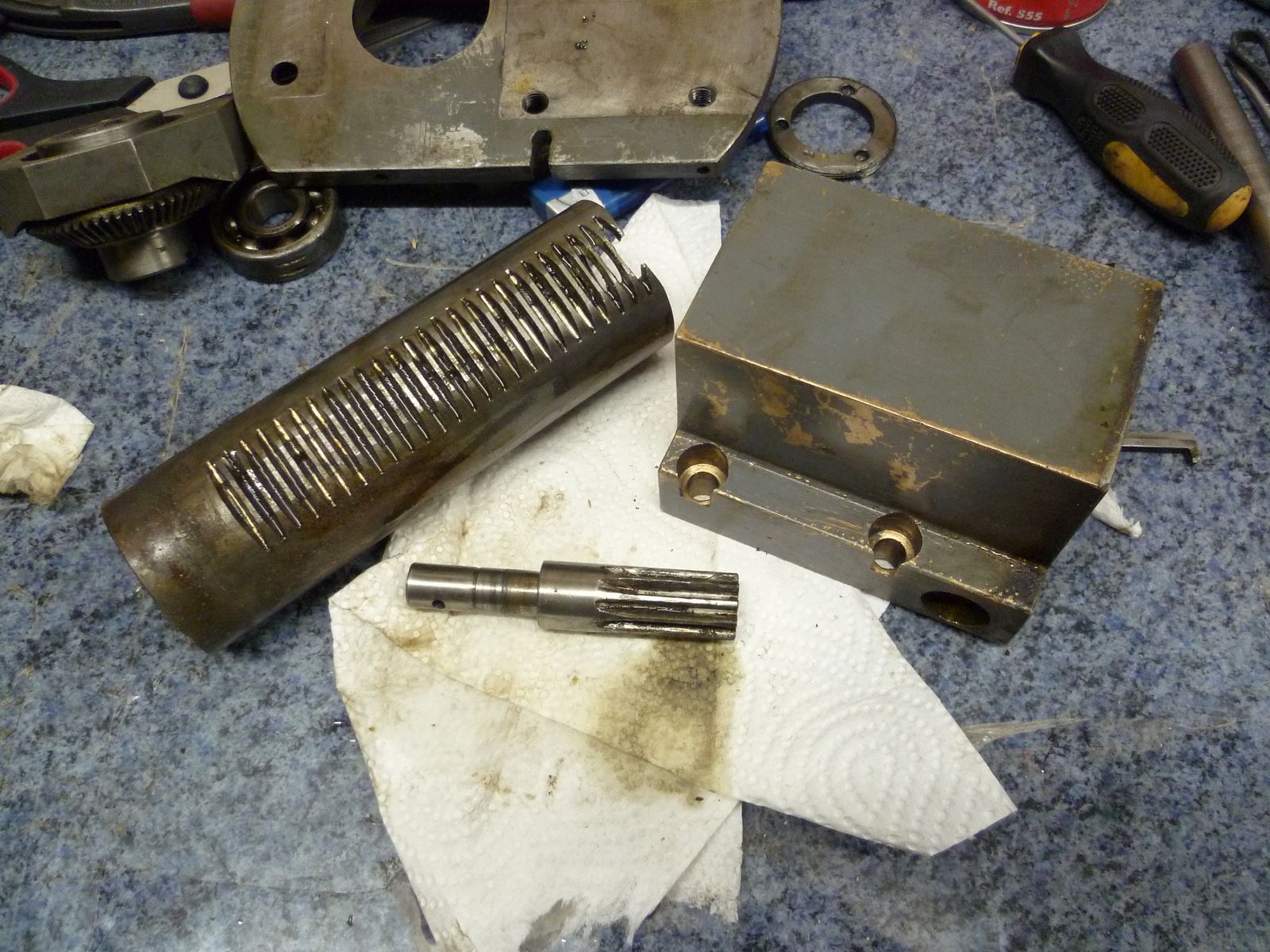 En l'état initial la manivelle de descente de la broche tournait dans le vide et la broche était bloquée.