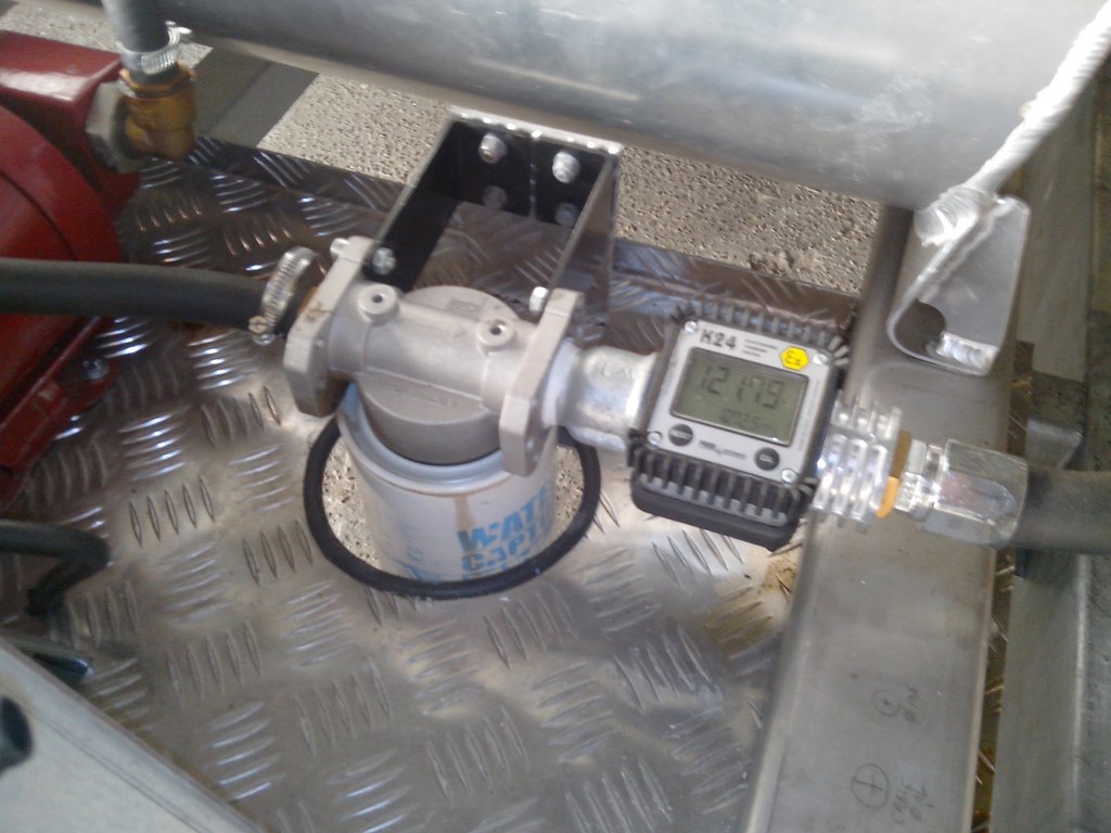 Vu les économies réalisées jusque là, on s'est fait plaisir avec un compteur électronique ATEX (marque PIUSI modèle K24). C'est un tout petit compteur qui peut se visser directement sur le pistolet. Nous l'avons finalement laissé à la sortie de la pompe.