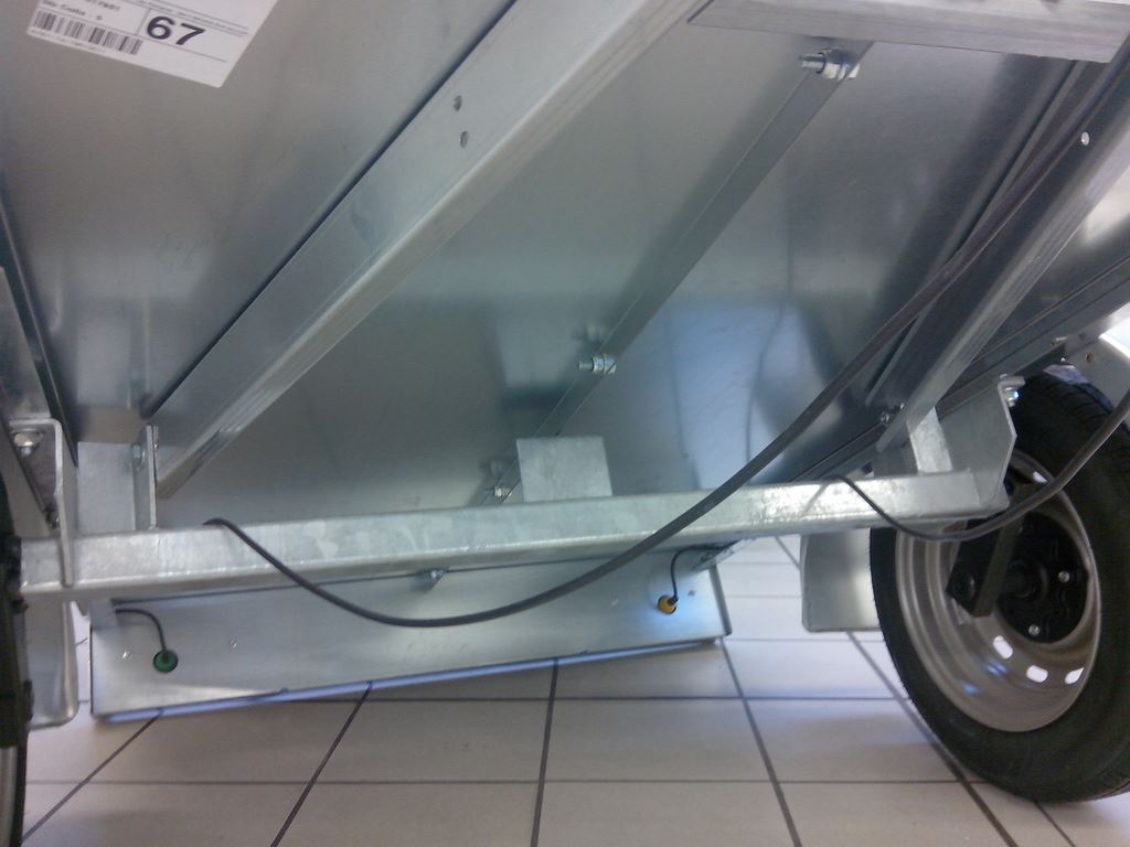 Après être allé au Nototo du coin pour jeter un oeil à leurs petites-remorques-bennes-pas-chères, j'ai rapidement laissé tomber cette solution. Il n'y a en effet strictement aucun chassis sous le plateau, il aurait fallu ajouter des kilos de tubes pour renforcer le fond pour poser la citerne. Bref, pour emmener son gazon à la déchetterie, oui, pour y poser 250kg, à oublier.