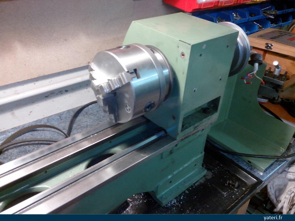 Mon tour est la version la plus simple qui existe : changements de vitesses par courroie, pas de compte tour, pas de boite de vitesse. Il possède néanmoins une vis mère permettant de réaliser des filetages, ainsi qu'un système de fixation du mandrin de type "cam-lock" permettant d'enlever et remettre le mandrin en un tour de main.
